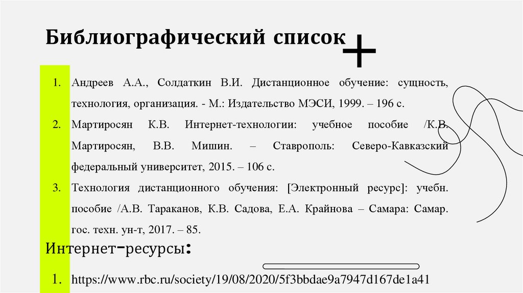 Библиографический список1. Андреев А.А., Солдаткин В.И. Дистанционное обучение: сущность,