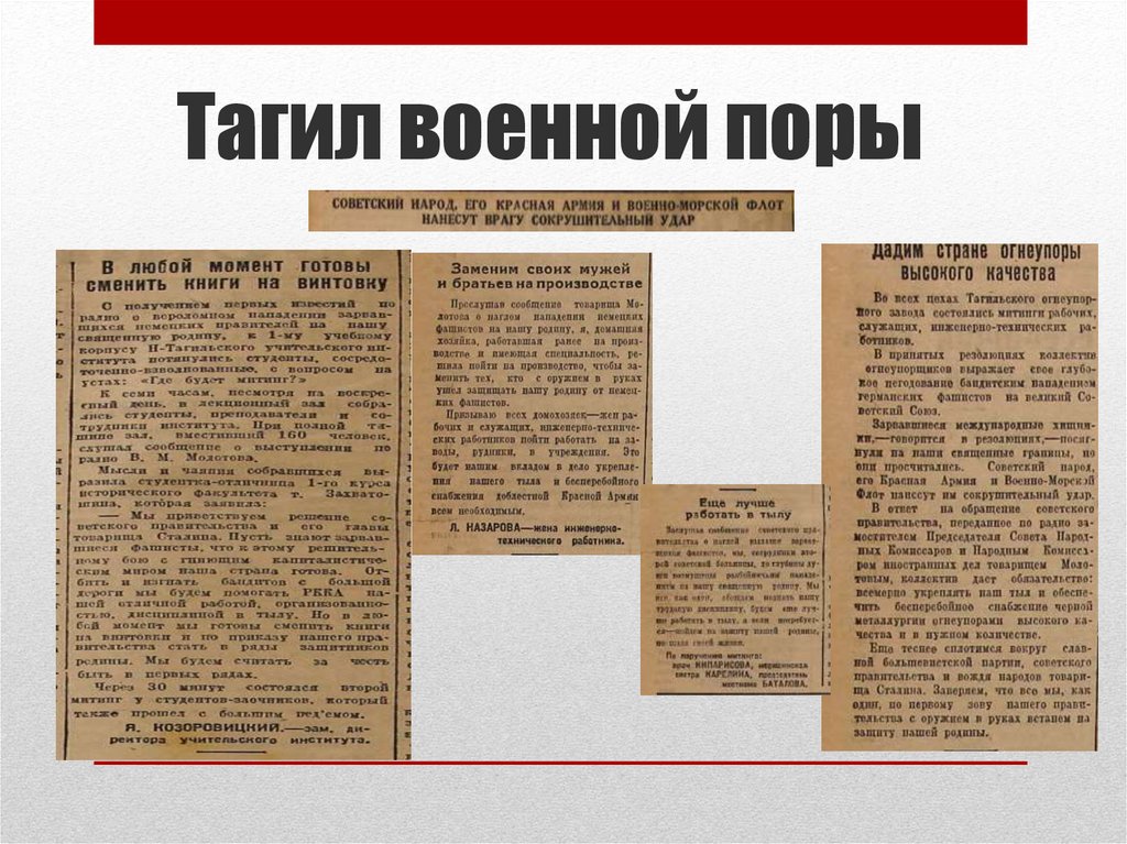 Тагил военной порыНа страницах «Тагильского рабочего» начинают активно публиковаться