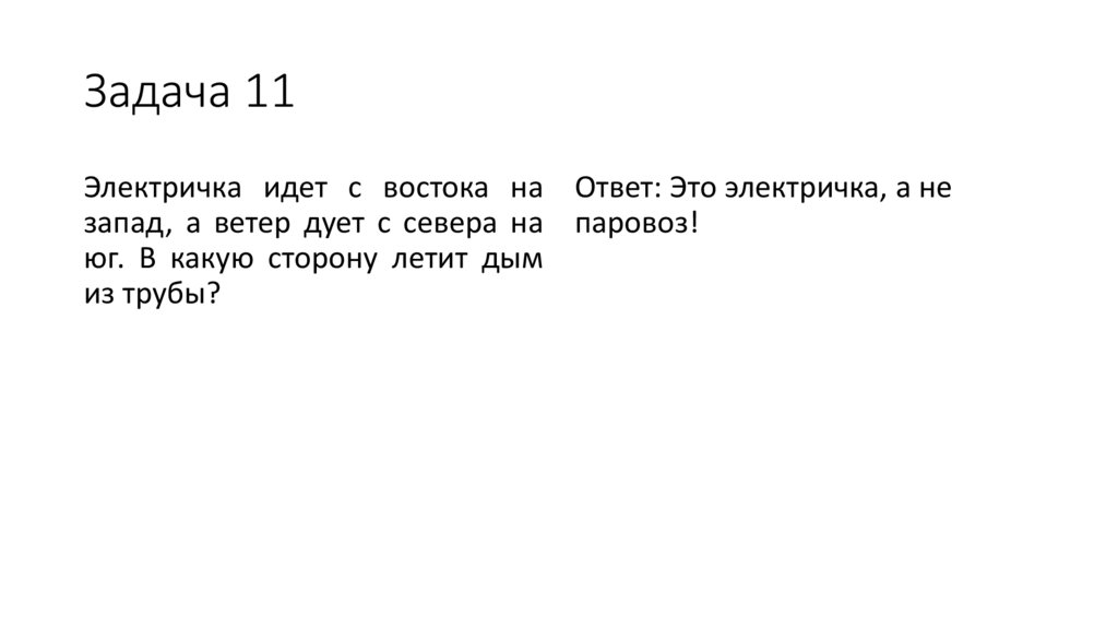 Задача 11Электричка идет с востока на Ответ: Это электричка, а не