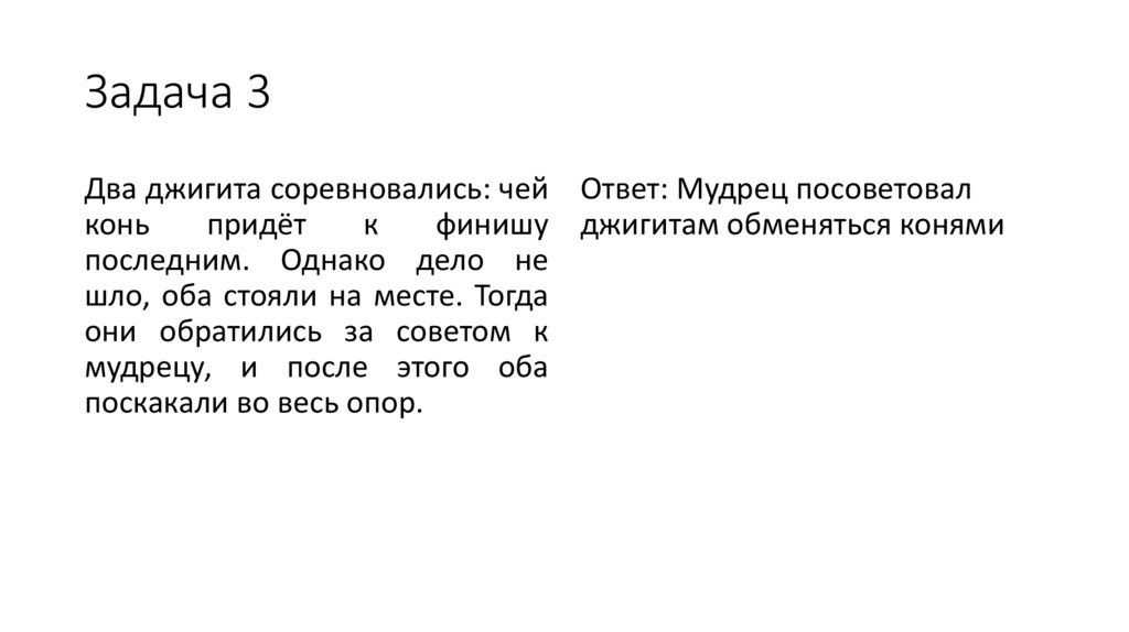 Задача 3Два джигита соревновались: чей Ответ: Мудрец посоветовал