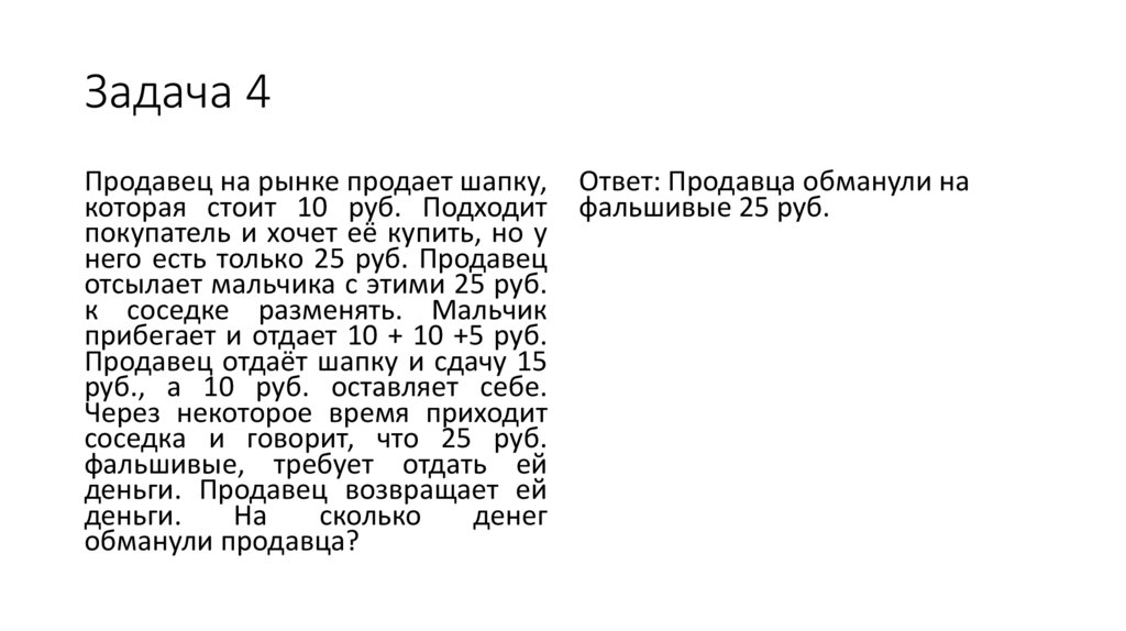 Ответ: Продавца обманули на