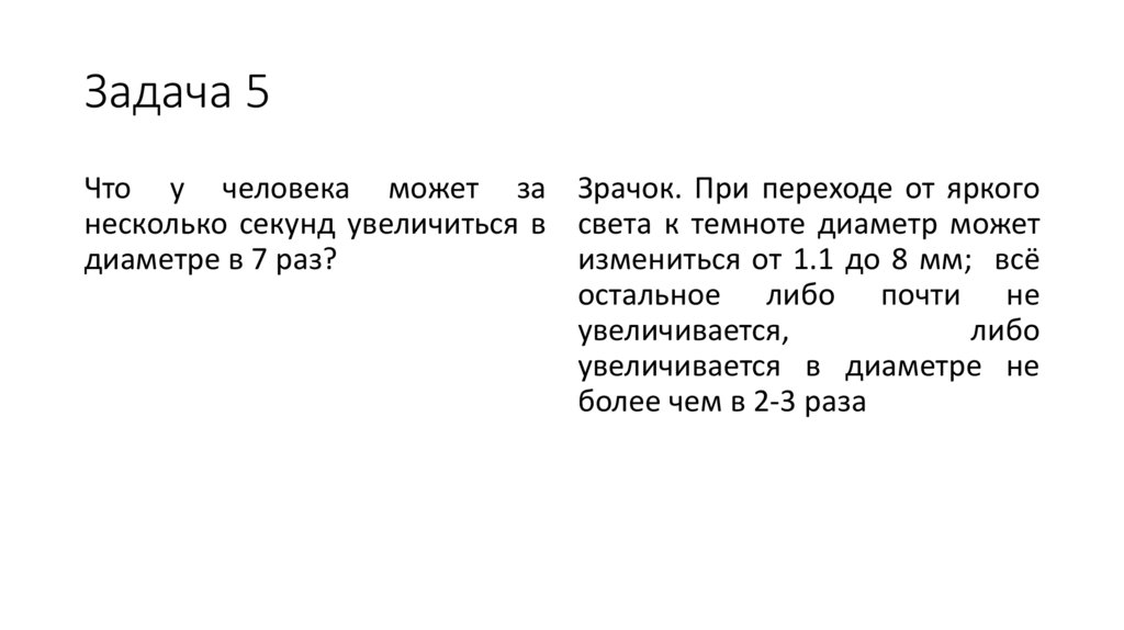 Задача 5Что у человека может за Зрачок. При переходе от яркого