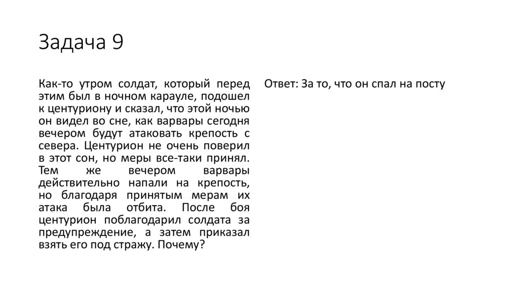 Задача 9Как-то утром солдат, который перед