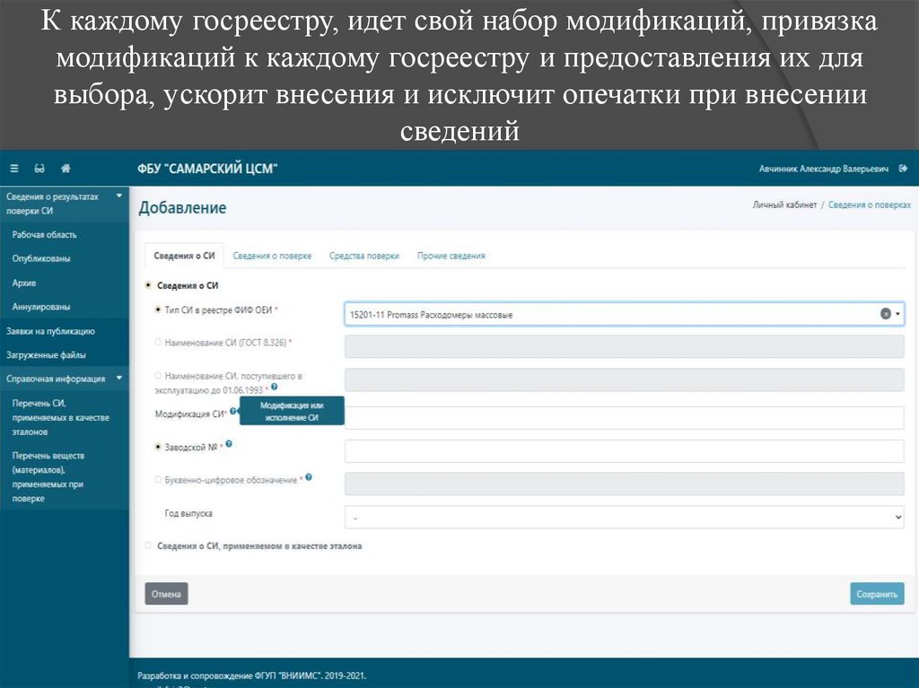 К каждому госреестру, идет свой набор модификаций, привязкамодификаций к каждому госреестру и предоставления их для