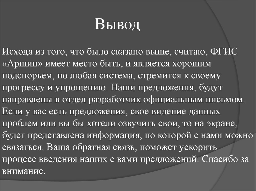 ВыводИсходя из того, что было сказано выше, считаю, ФГИС