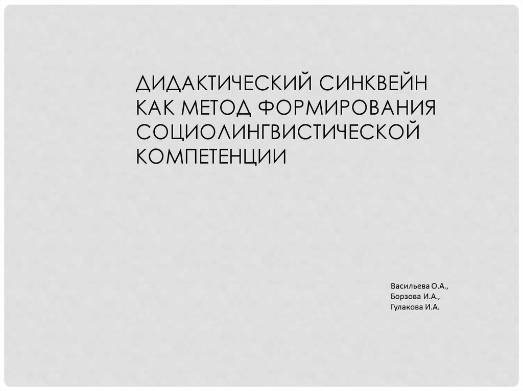 ДИДАКТИЧЕСКИЙ СИНКВЕЙНКАК МЕТОД ФОРМИРОВАНИЯ