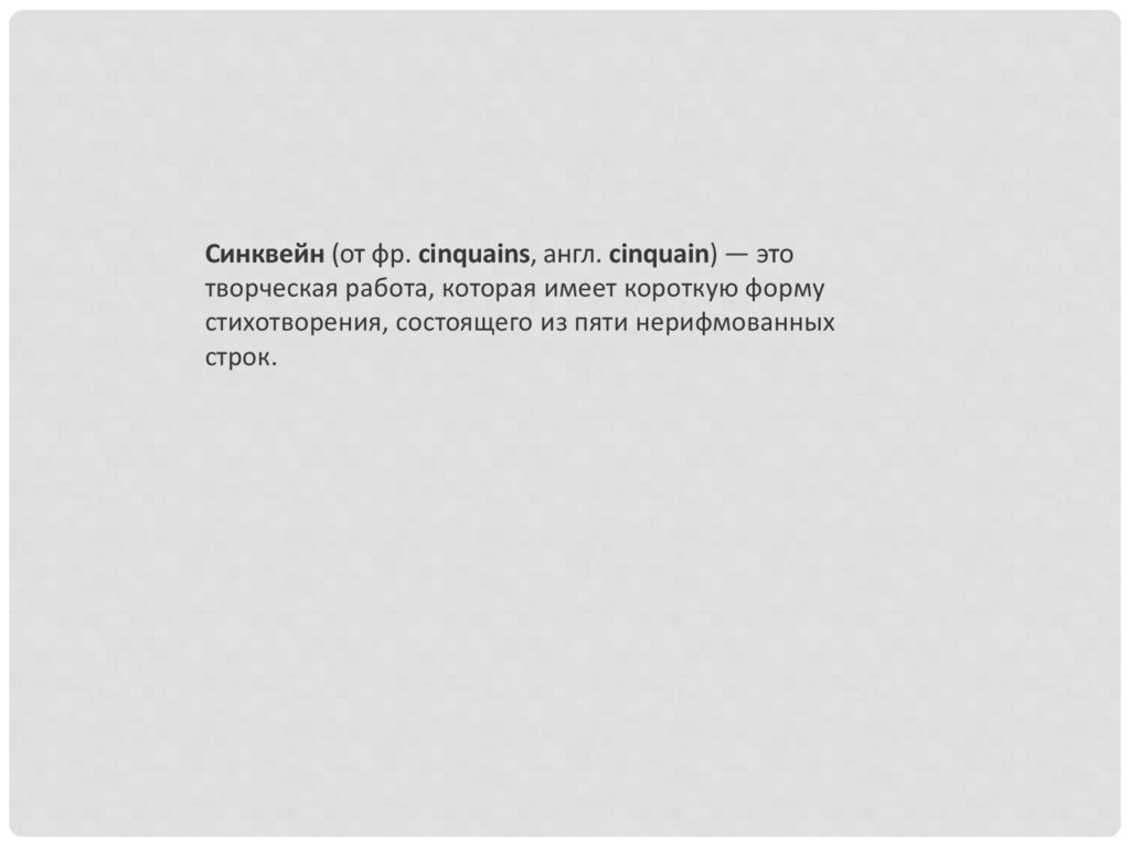 Синквейн (от фр. cinquains, англ. cinquain) — этотворческая работа, которая имеет короткую форму