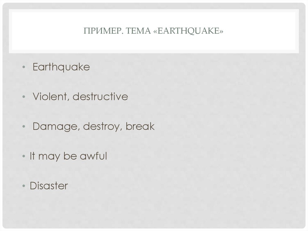 ПРИМЕР. ТЕМА «EARTHQUAKE»• Earthquake