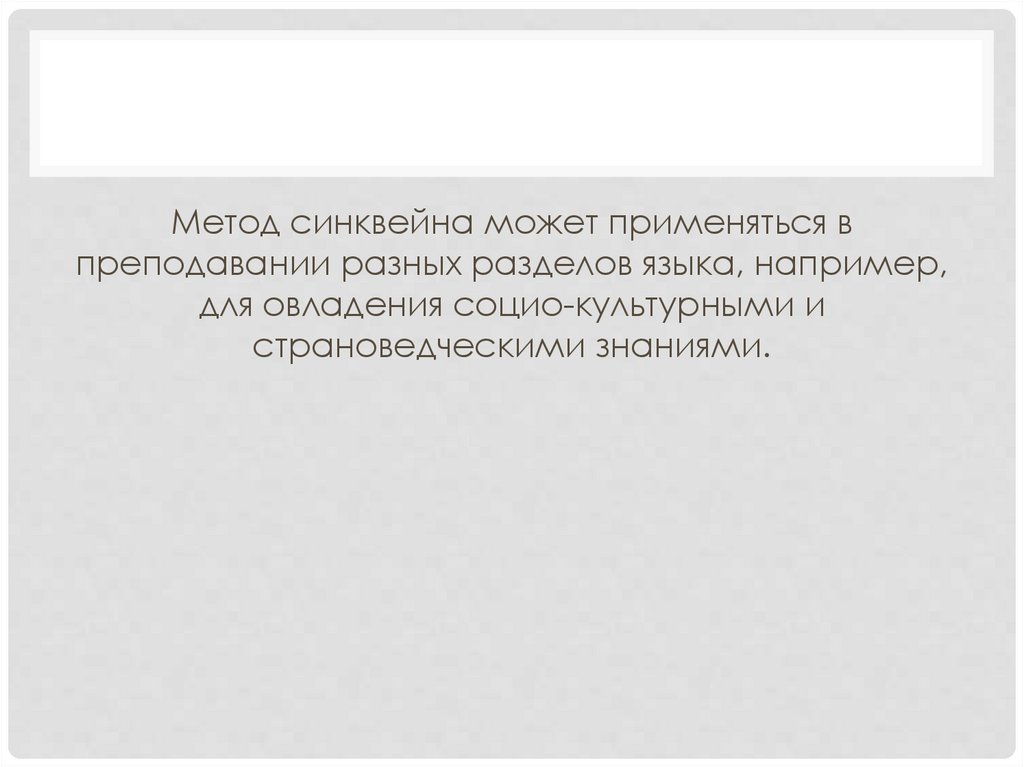 Метод синквейна может применяться в преподаванииразных разделов языка, например, для овладения социо-
