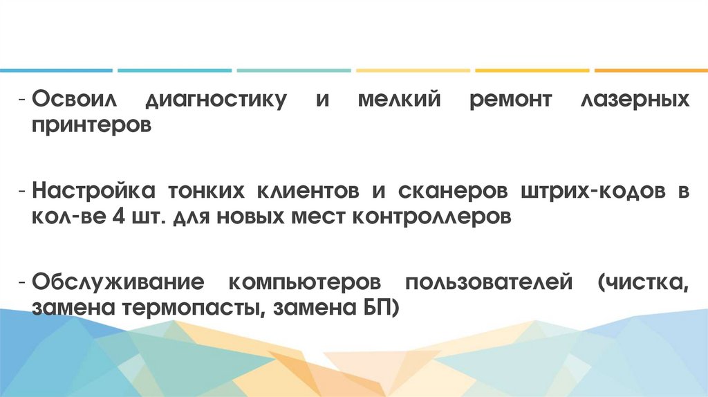 - Освоил диагностикупринтеров