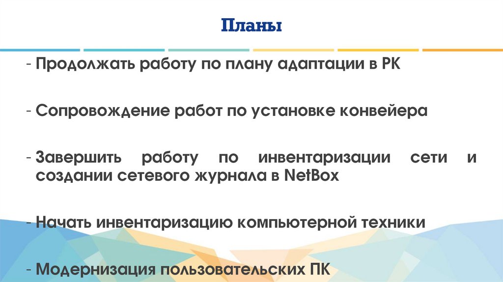 Планы- Продолжать работу по плану адаптации в РК