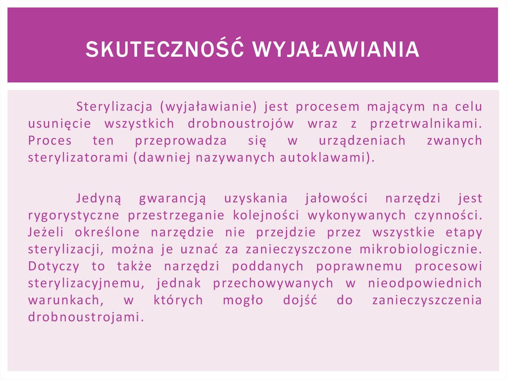 SKUTECZNOŚĆ WYJAŁAWIANIASterylizacja (wyjaławianie) jest procesem mającym na celu