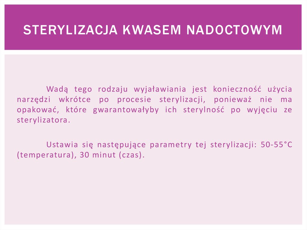 STERYLIZACJA KWASEM NADOCTOWYMWadą tego rodzaju wyjaławiania jest konieczność użycia