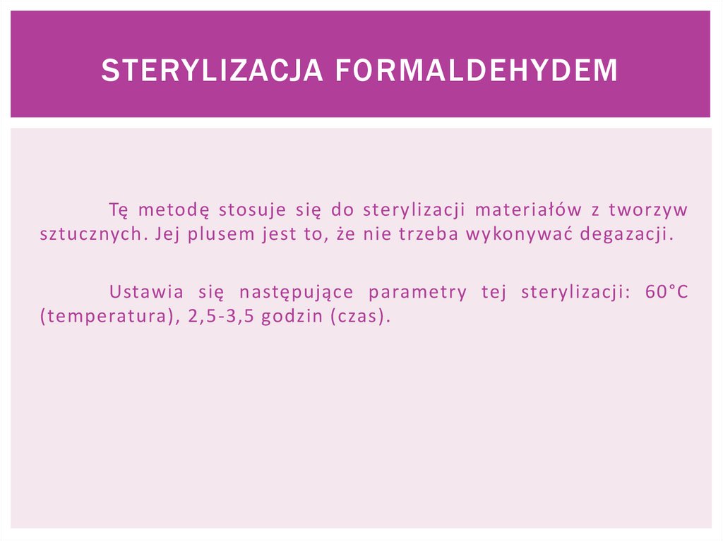 STERYLIZACJA FORMALDEHYDEMTę metodę stosuje się do sterylizacji materiałów z tworzyw