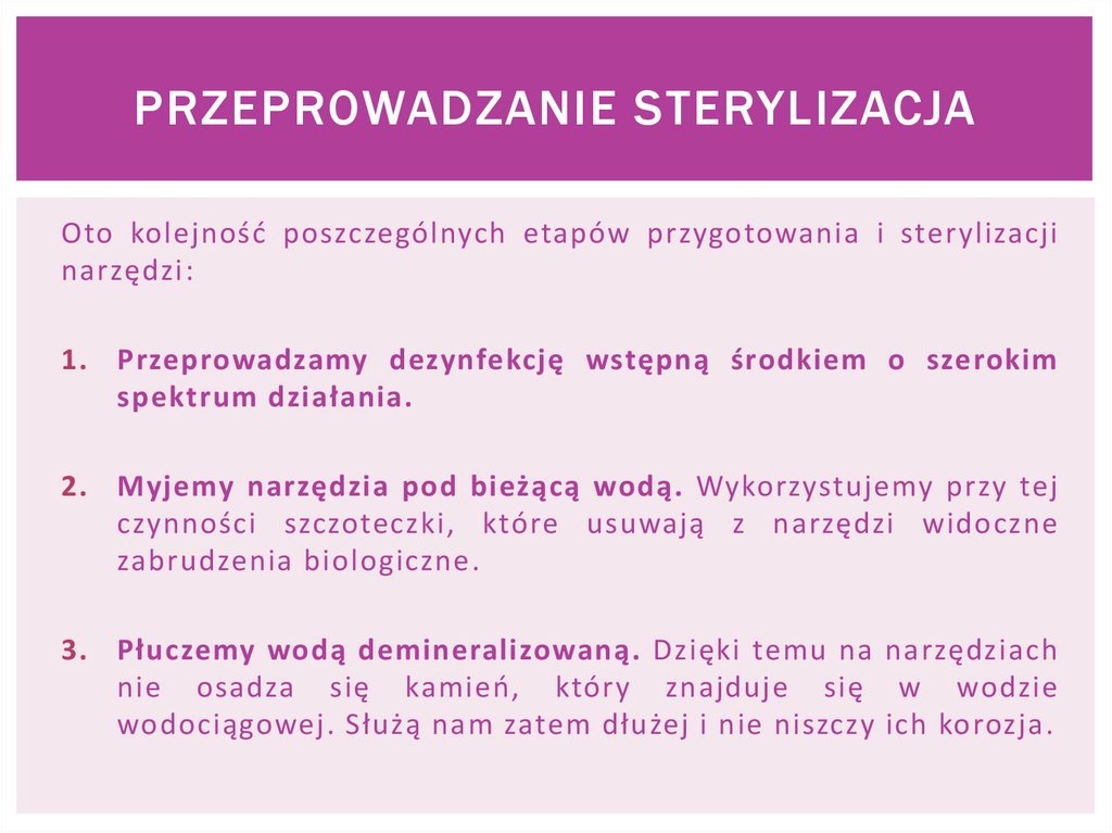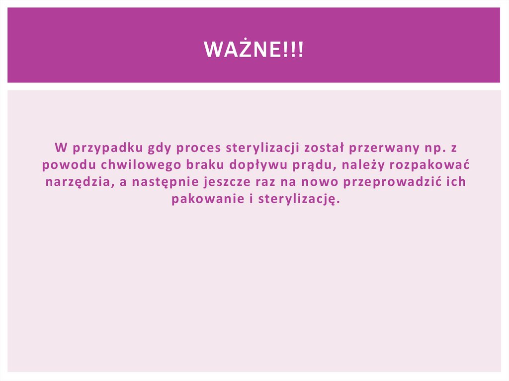 PRZEPROWADZANIE STERYLIZACJAOto kolejność poszczególnych etapów przygotowania i sterylizacji