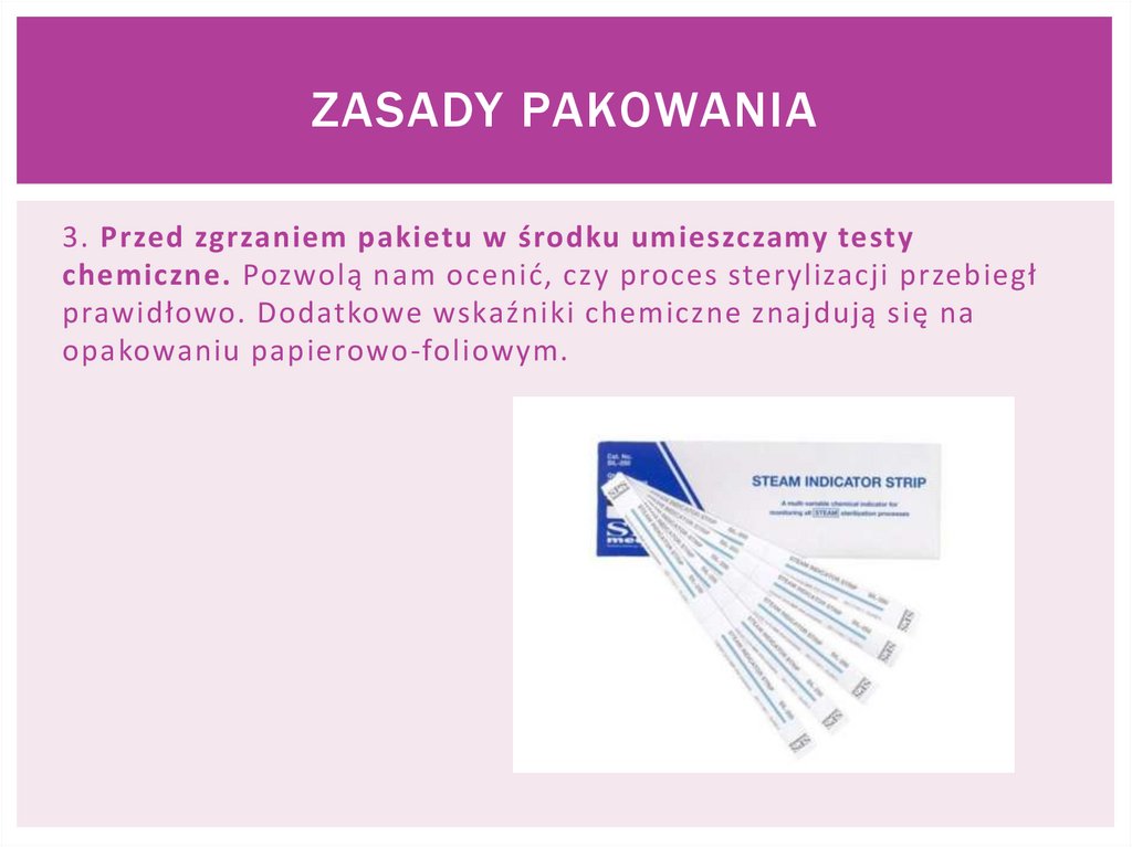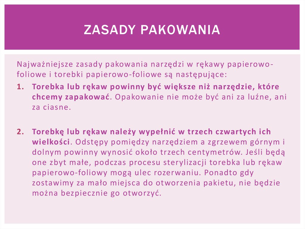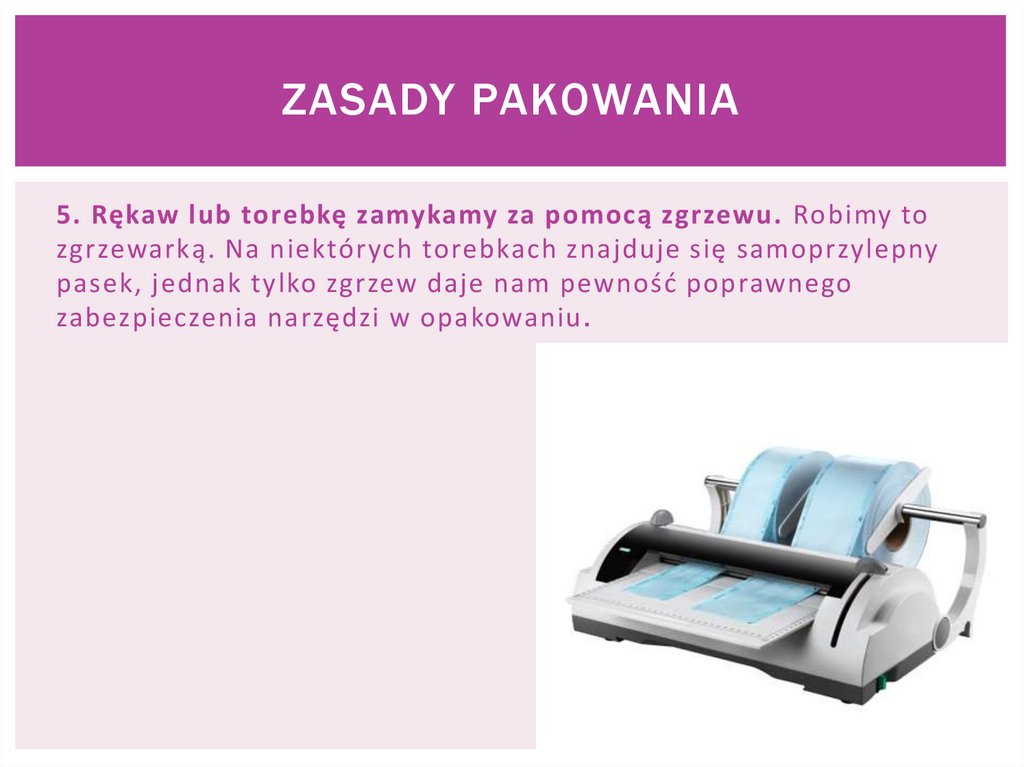 PRZEPROWADZANIE STERYLIZACJI8. Pakujemy. Wkładamy narzędzia do opakowania sterylizacyjnego,