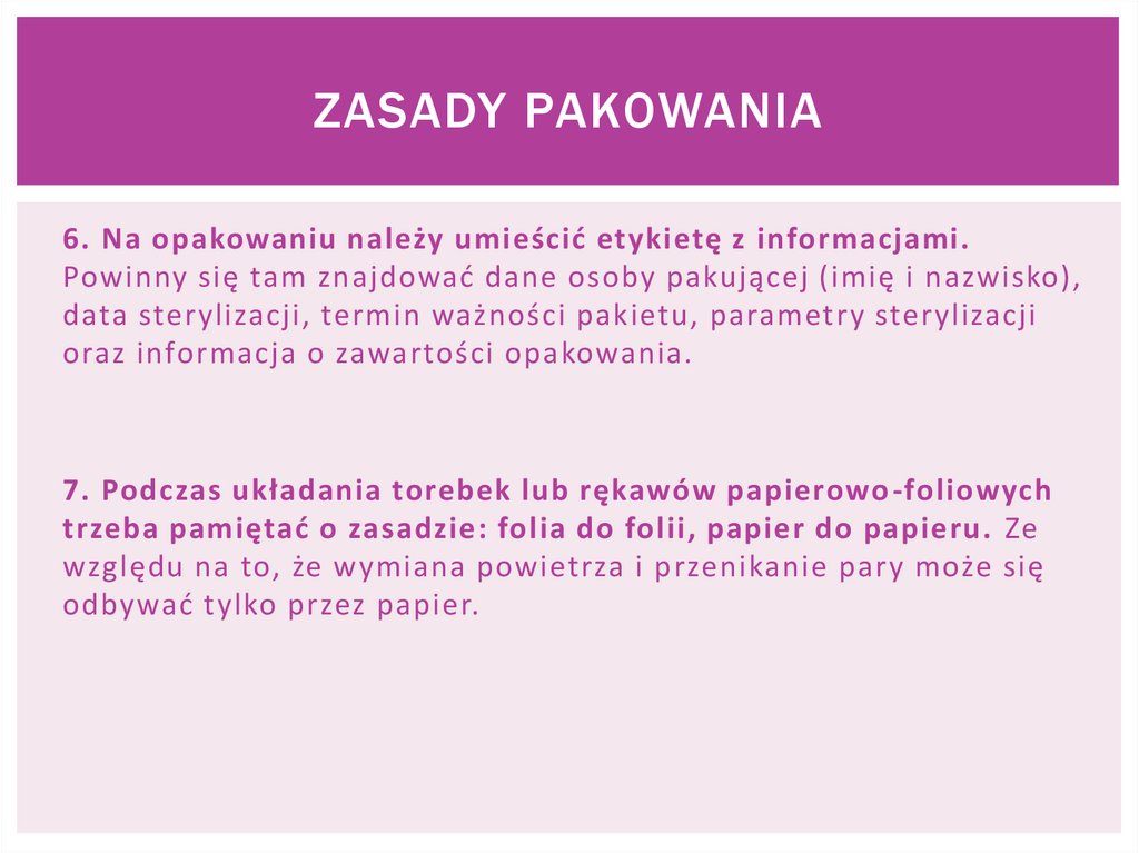 opakować, które gwarantowałyby ich sterylność po wyjęciu ze