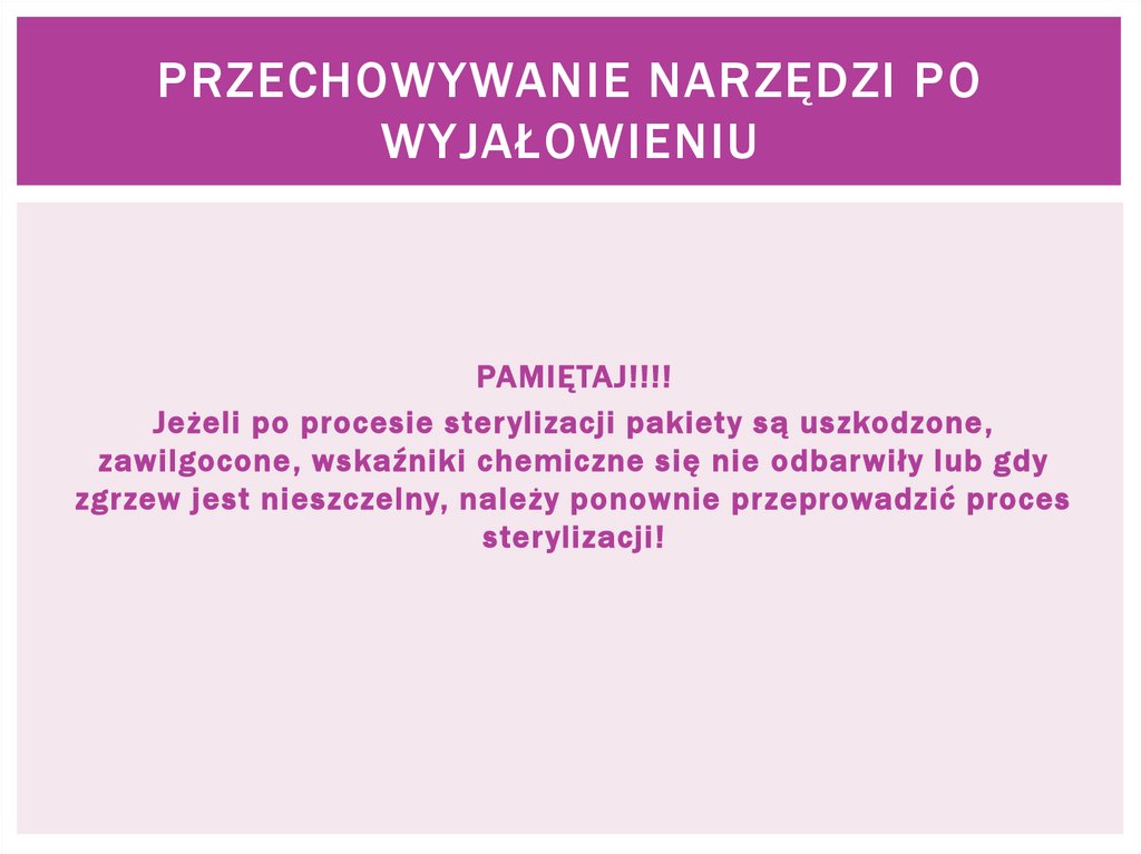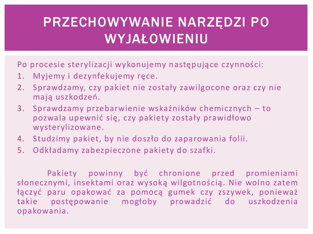 narzędzi wkrótce po procesie sterylizacji, ponieważ nie ma