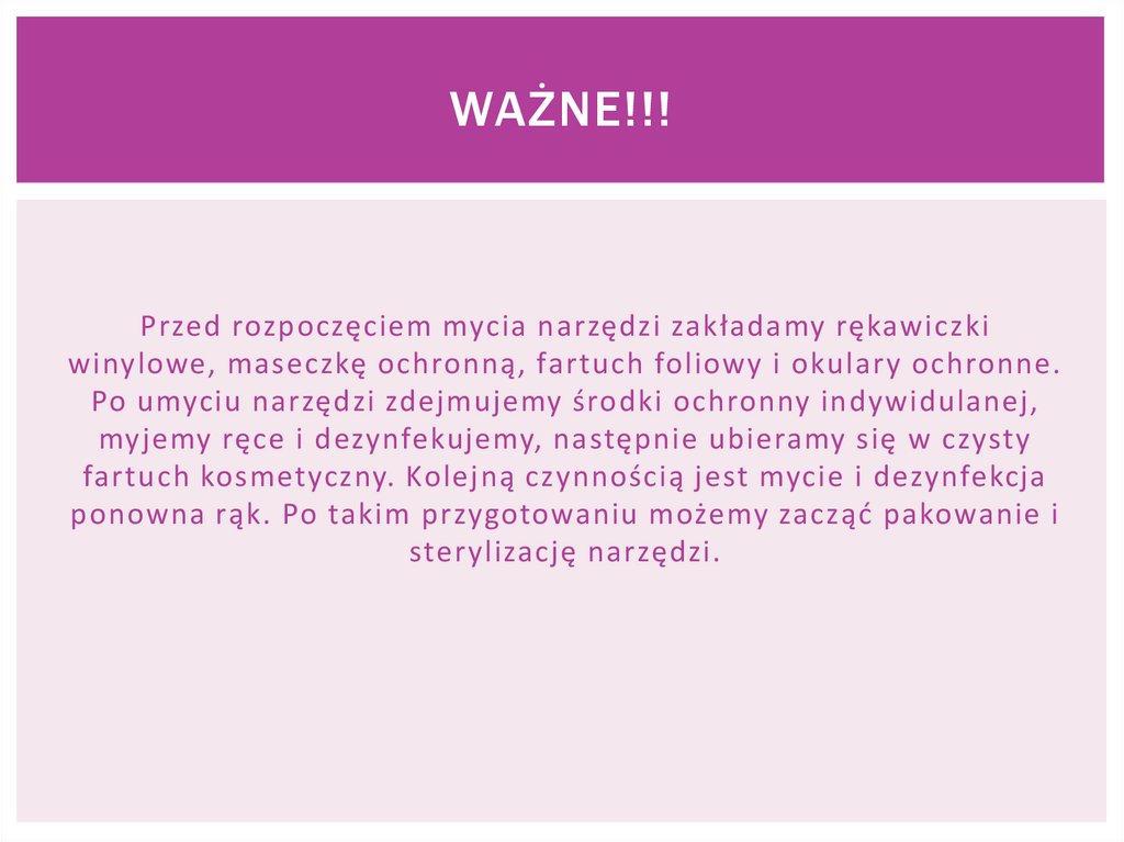 WAŻNE!!!Przed rozpoczęciem mycia narzędzi zakładamy rękawiczki
