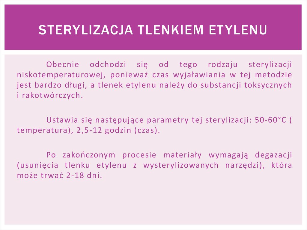 STERYLIZACJA TLENKIEM ET YLENUObecnie odchodzi się od tego rodzaju sterylizacji