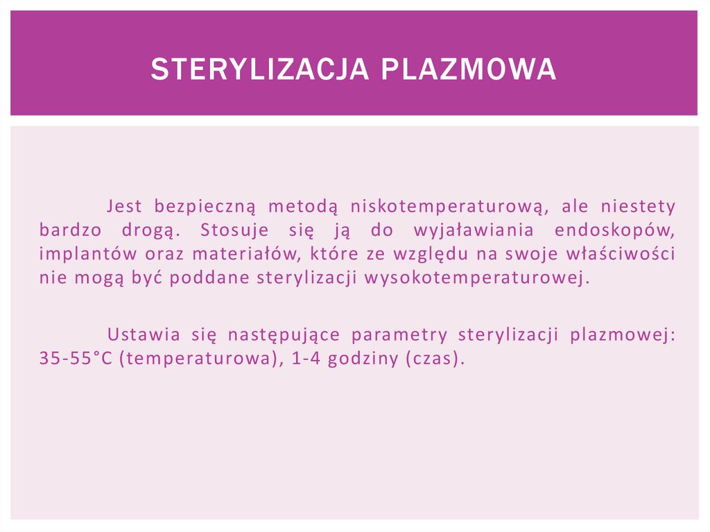STERYLIZACJA PLAZMOWAJest bezpieczną metodą niskotemperaturową, ale niestety