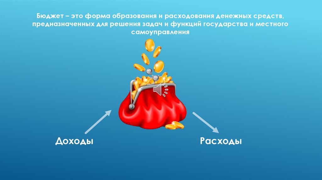 Бюджет – это форма образования и расходования денежных средств,предназначенных для решения задач и функций государства и местного