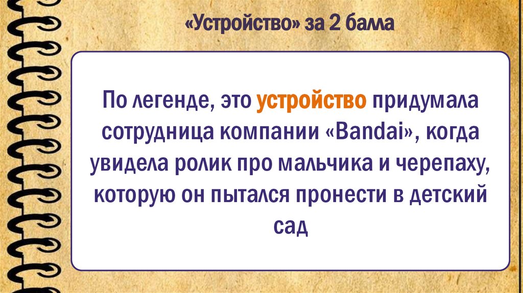 «Устройство» за 2 баллаПо легенде, это устройство придумала