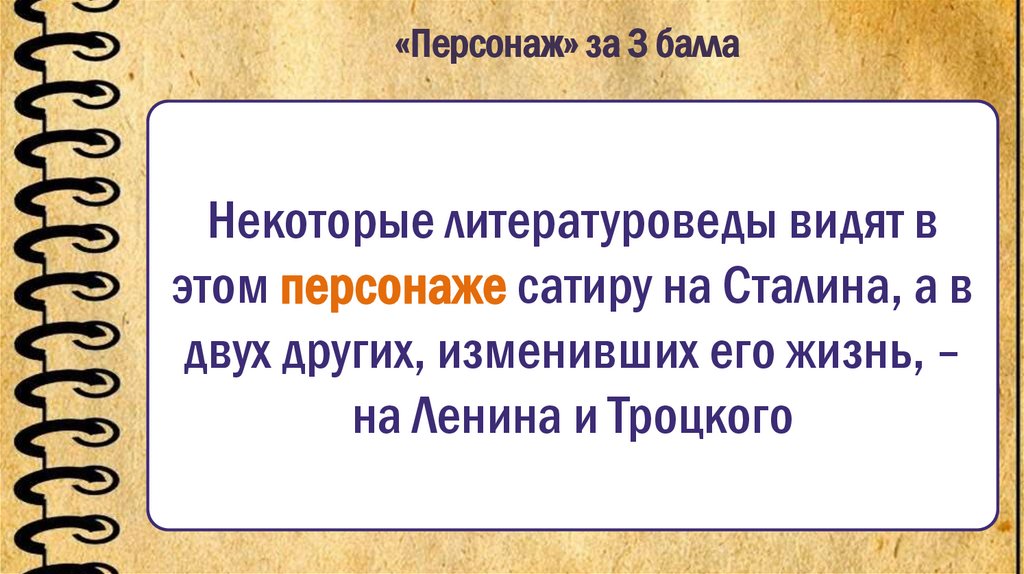 «Персонаж» за 3 баллаНекоторые литературоведы видят в