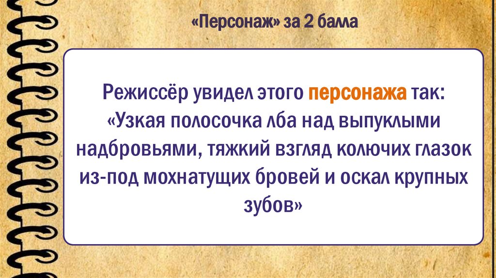 «Персонаж» за 2 баллаРежиссёр увидел этого персонажа так: