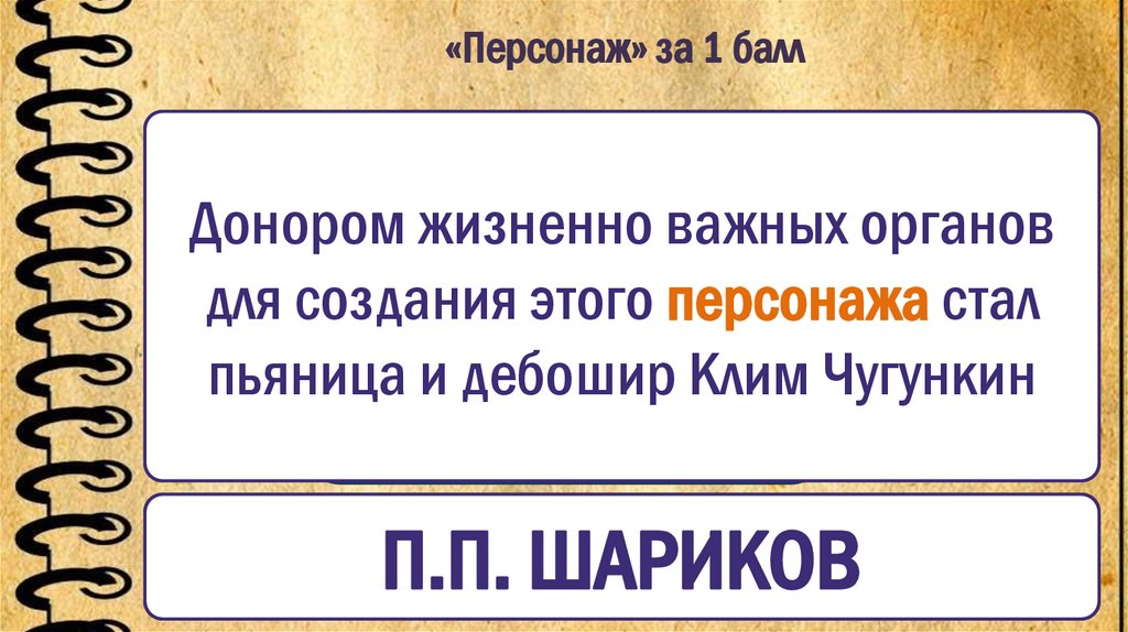 «Персонаж» за 1 баллДонором жизненно важных органов