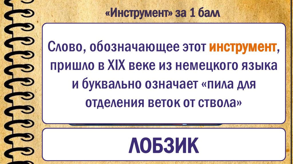 «Инструмент» за 1 баллСлово, обозначающее этот инструмент,