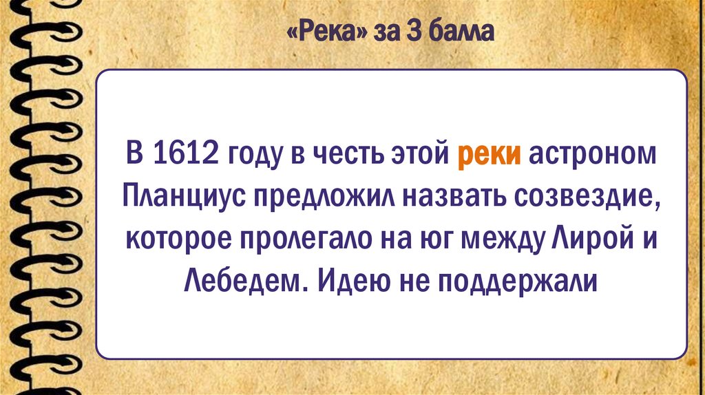 «Река» за 3 баллаВ 1612 году в честь этой реки астроном