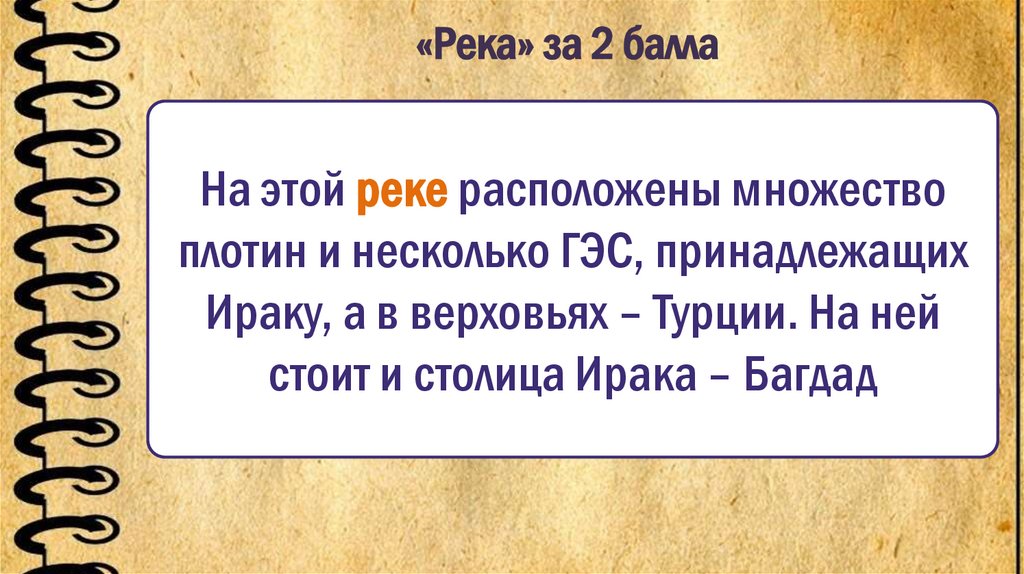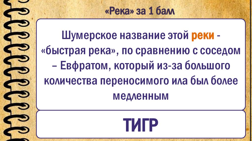 «Река» за 1 баллШумерское название этой реки «быстрая река», по сравнению с соседом