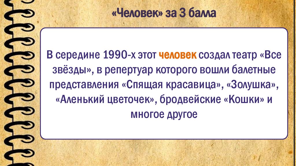«Человек» за 3 баллаВ середине 1990-х этот человек создал театр «Все