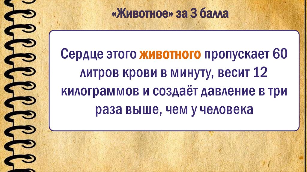 «Животное» за 3 баллаСердце этого животного пропускает 60