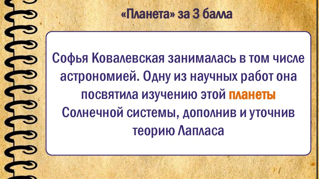 «Планета» за 3 баллаСофья Ковалевская занималась в том числе