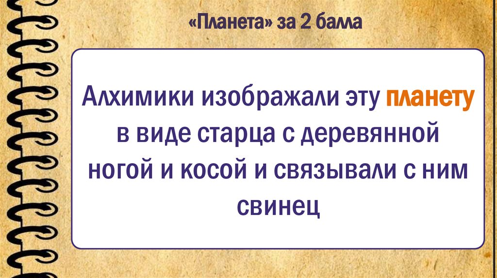 «Планета» за 2 баллаАлхимики изображали эту планету