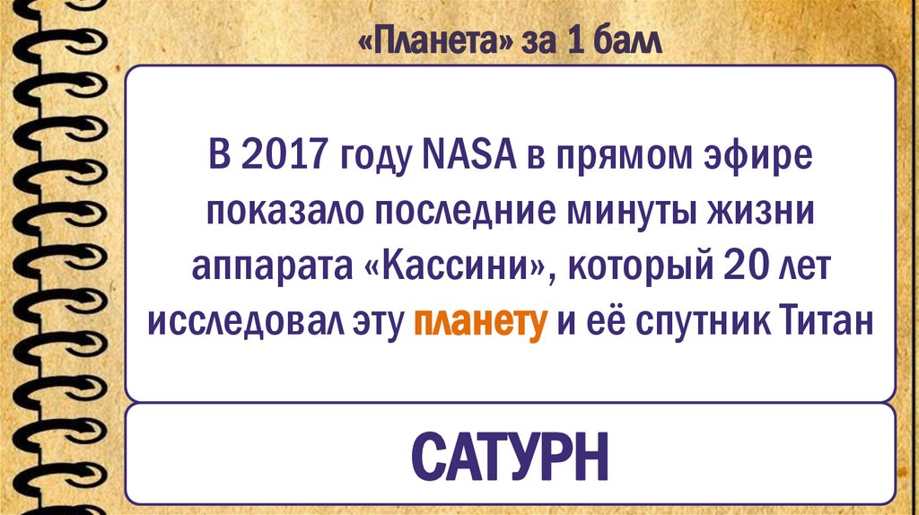 «Планета» за 1 баллВ 2017 году NASA в прямом эфире