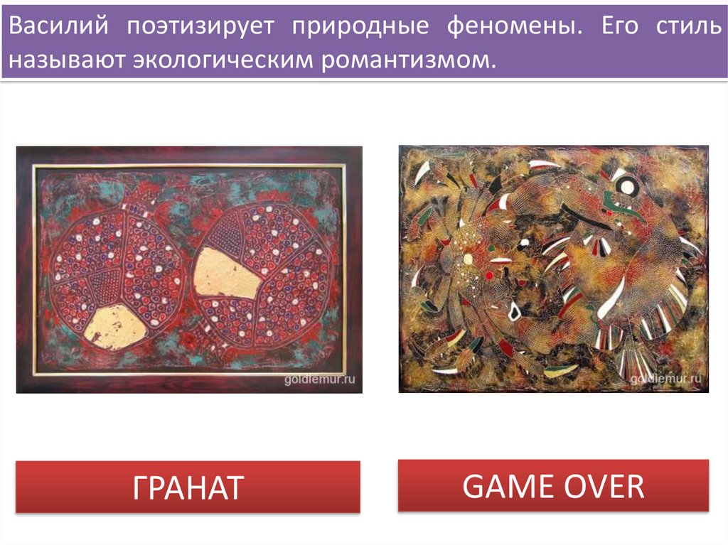 Василий поэтизирует природные феномены. Его стильназывают экологическим романтизмом.