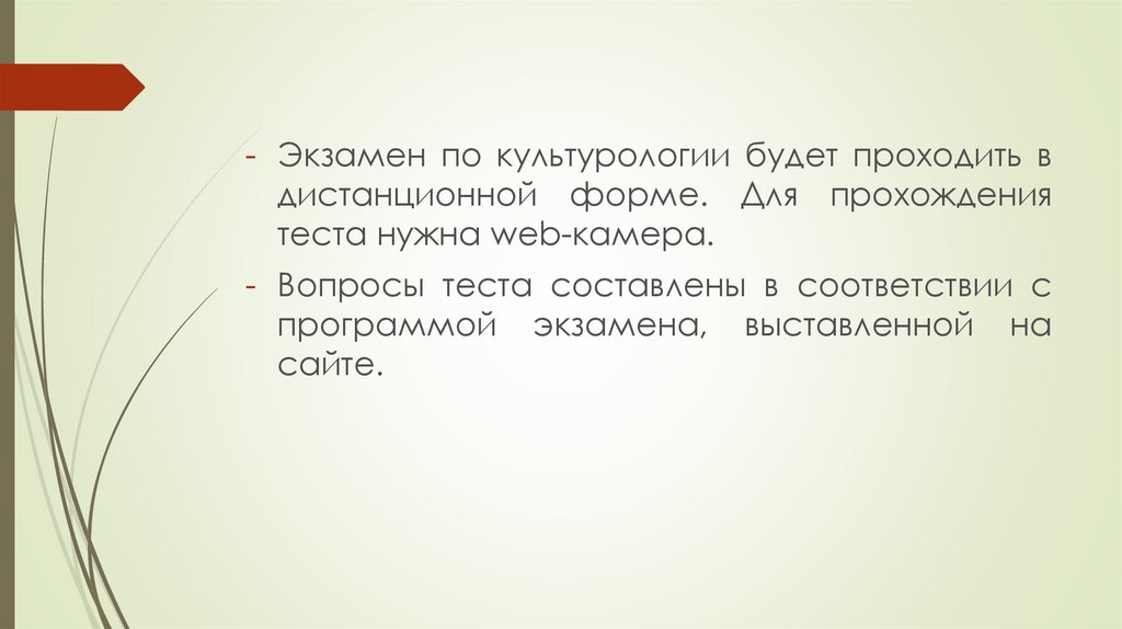 - Экзамен по культурологии будет проходить вдистанционной форме. Для прохождения
