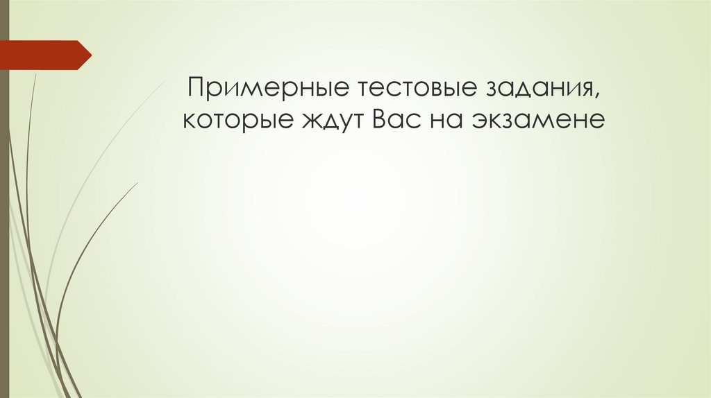 Примерные тестовые задания,которые ждут Вас на экзамене