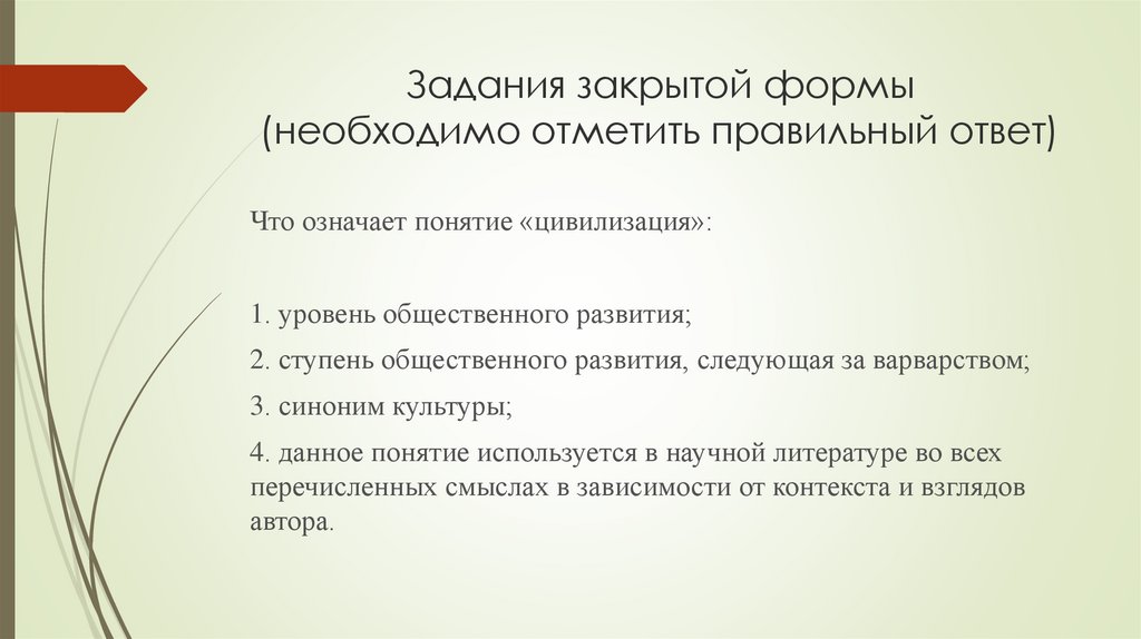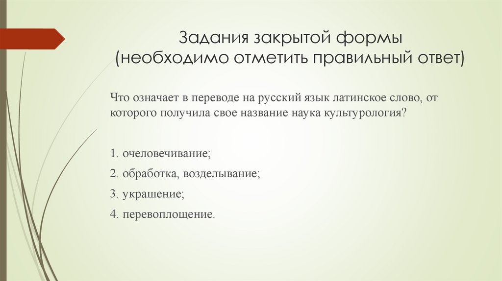 Задания закрытой формы(необходимо отметить правильный ответ)