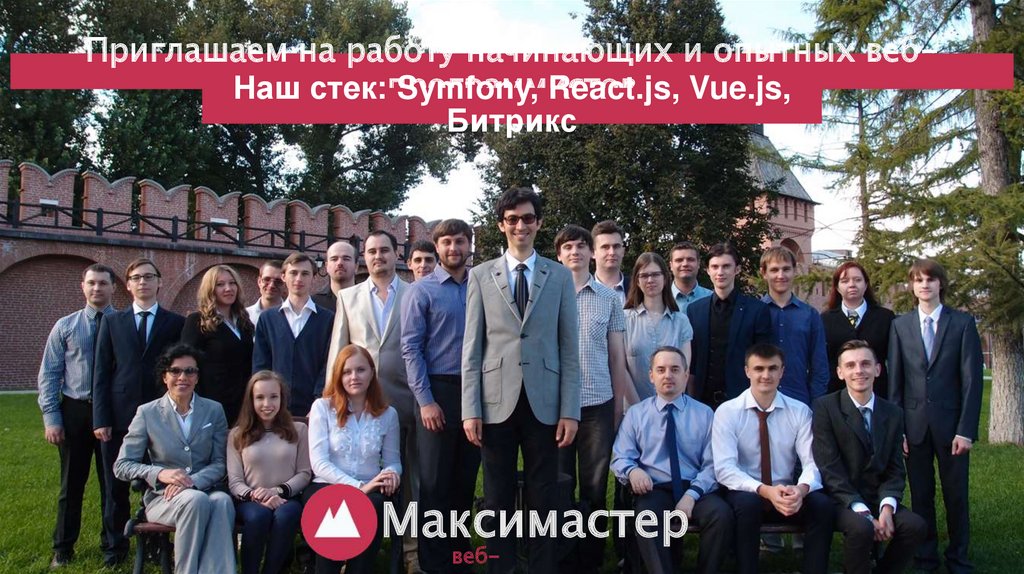 Приглашаем на работу начинающих и опытных вебНаш стек:программистовSymfony, React.js, Vue.js,
