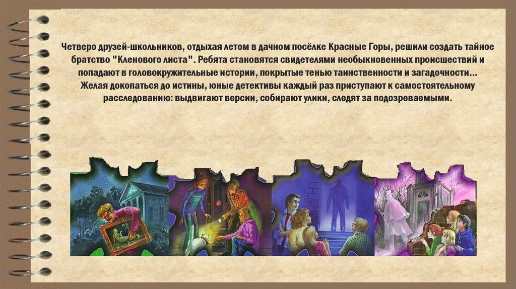 Четверо друзей-школьников, отдыхая летом в дачном посёлке Красные Горы, решили создать тайноебратство "Кленового листа". Ребята становятся свидетелями необыкновенных происшествий и