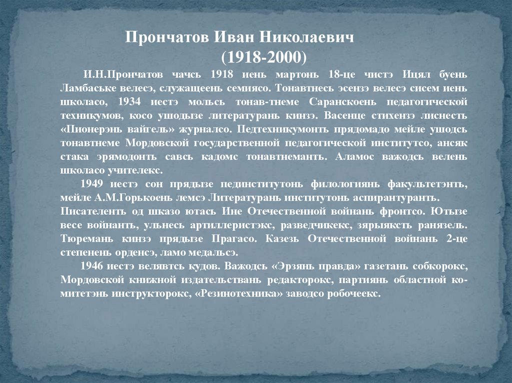 Видечинь толонь кирвазтиця: Иван Николаевич Прончатов (1918-2000)