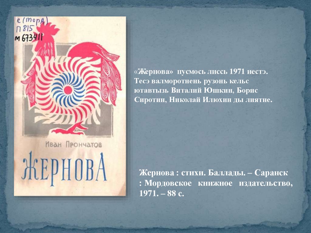 «Жернова» пусмось лиссь 1971 иестэ.Тесэ валморотнень рузонь кельс