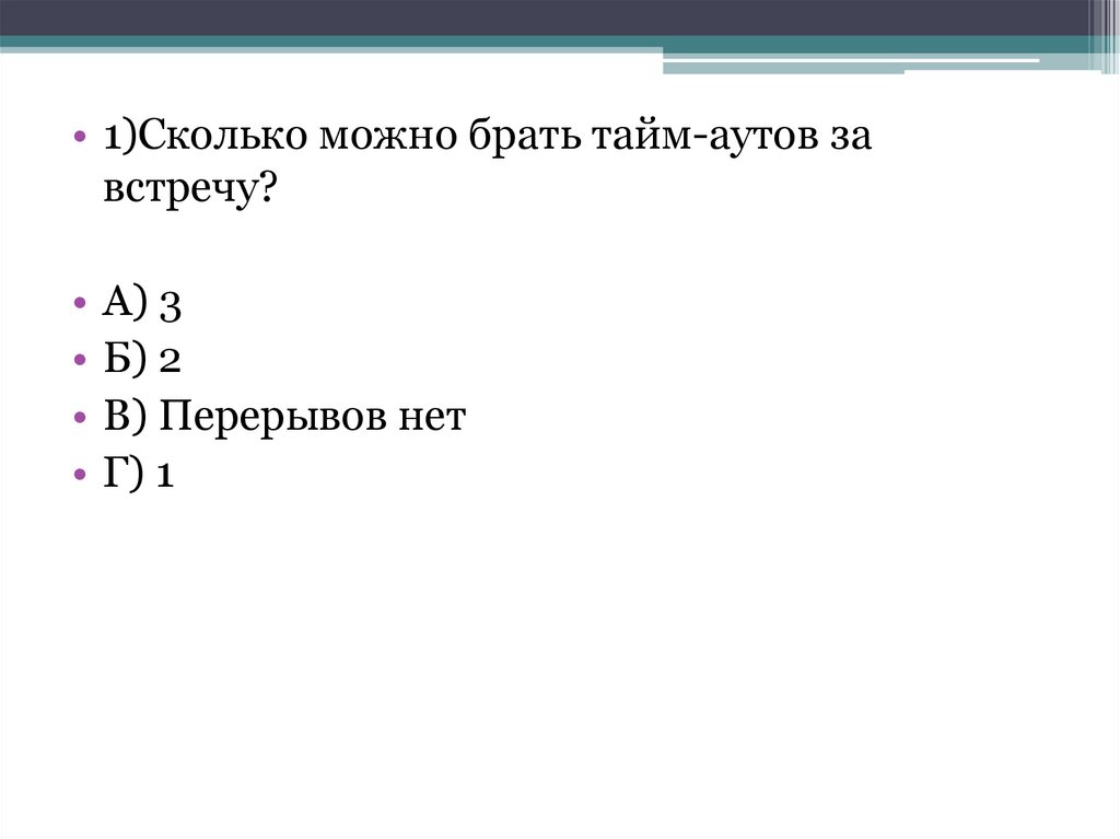 • 1)Сколько можно брать тайм-аутов завстречу?