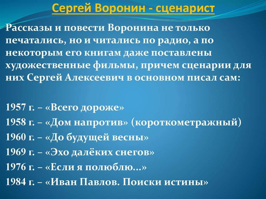 Сергей Воронин - сценаристРассказы и повести Воронина не только