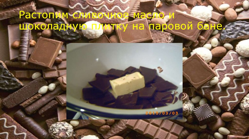 Растопим сливочное масло ишоколадную плитку на паровой бане.