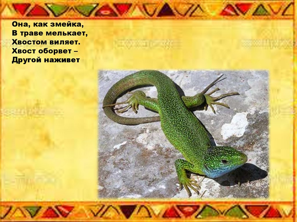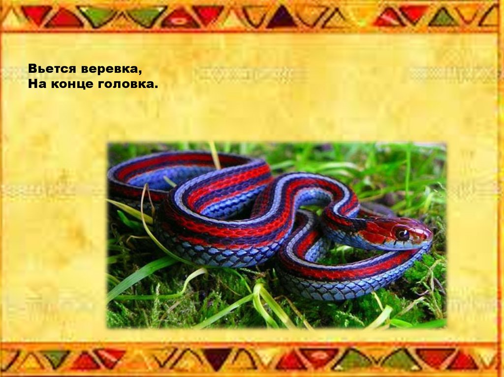 Она, как змейка,В траве мелькает,